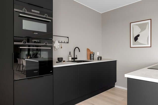 공간을 효율적으로 사용하기 위해 전자레인지, 오븐, 냉장고 등을 빌트인으로 설치하면 좋습니다. 빌트인 가전은 공간 절약 효과가 크며, 디자인도 통일감 있게 연출할 수 있습니다.